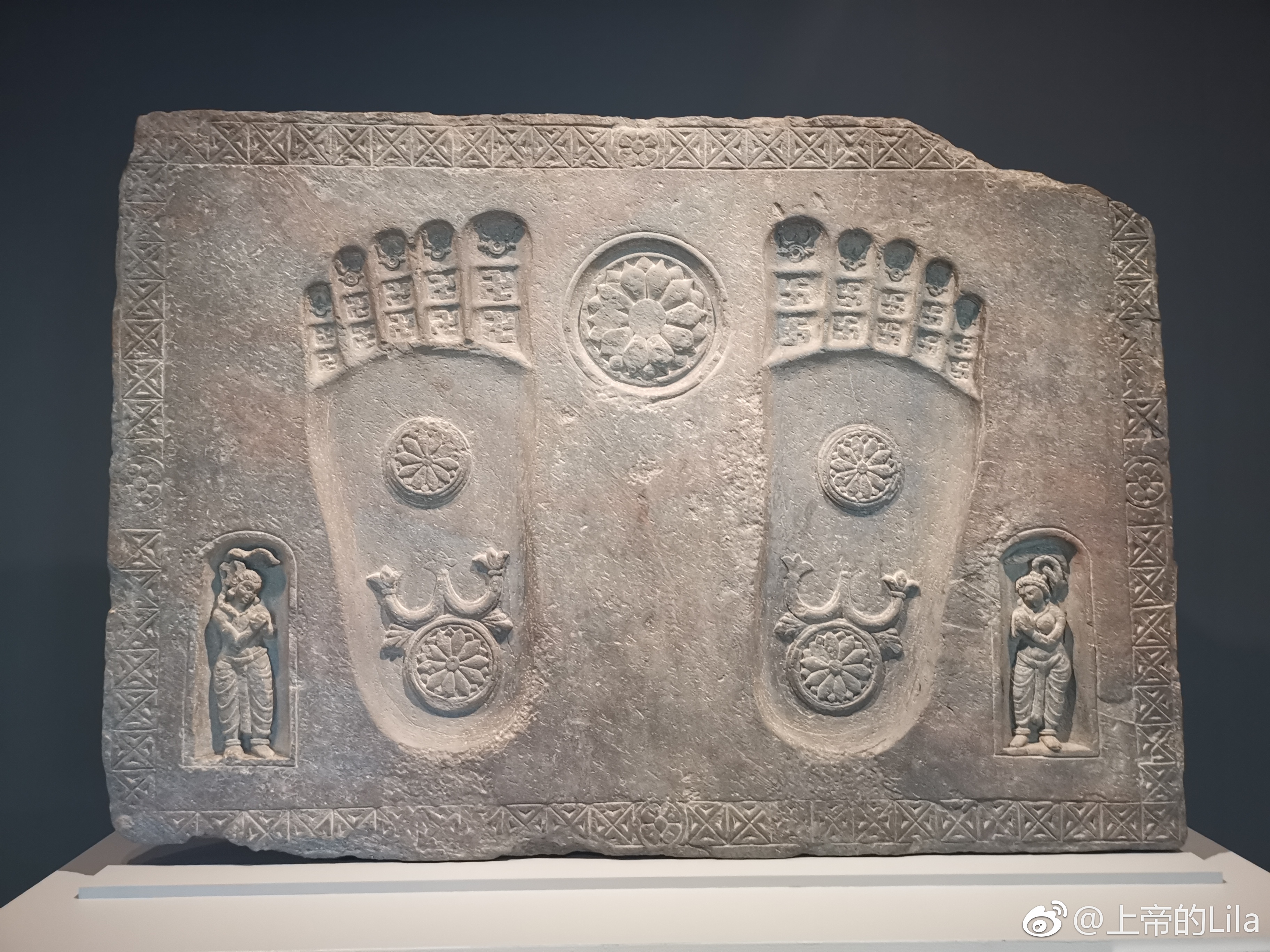 对了,还有在耶鲁大学博物馆看到的佛陀脚印石雕,一看到就灌顶般 从脚底通至全中脉通至全身脉络。所以白度母有七只眼。